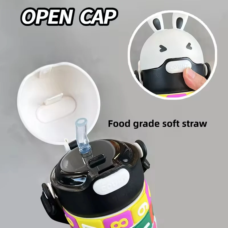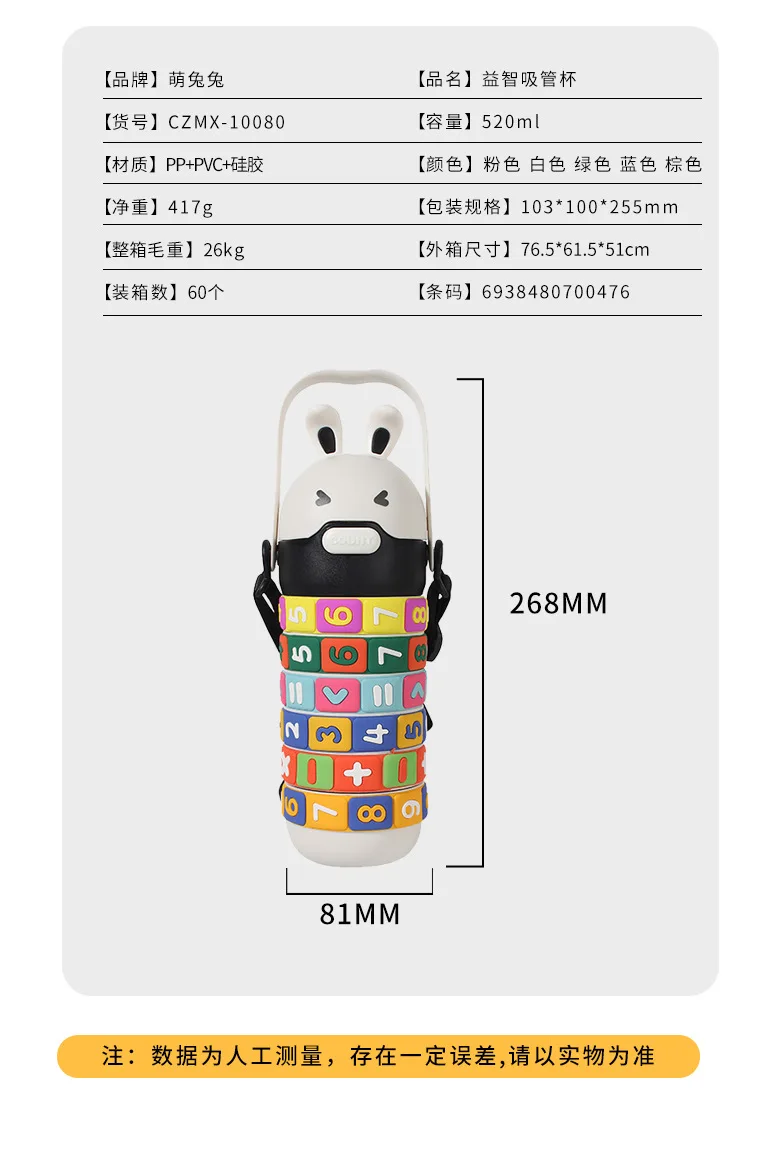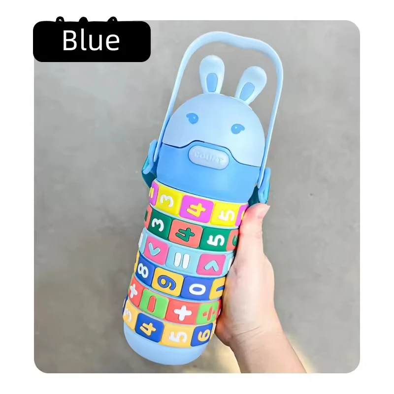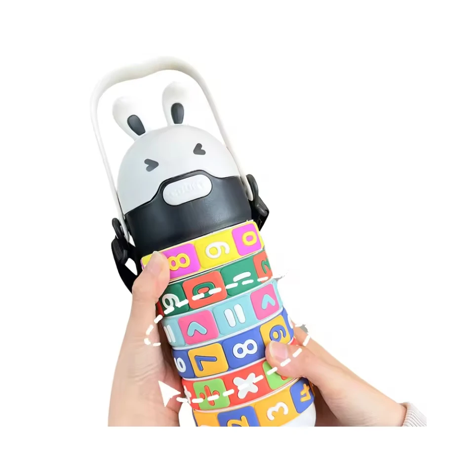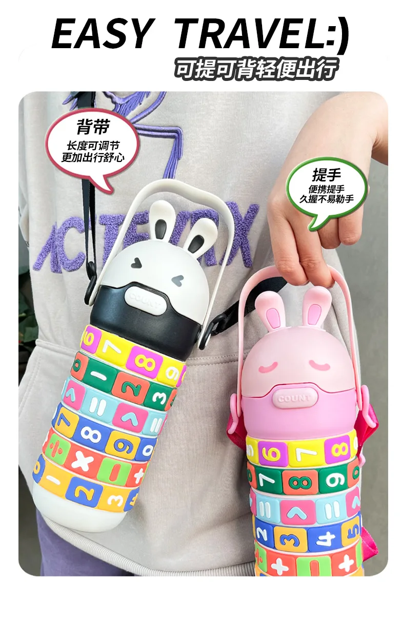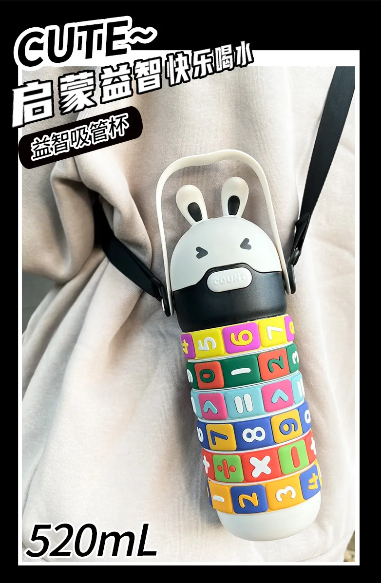 Cute Fun Student Rabbit Drinking Cup Kids Digital Plus Minus Toys Drinking Cup Plastic Water Bottle With Straw Strap